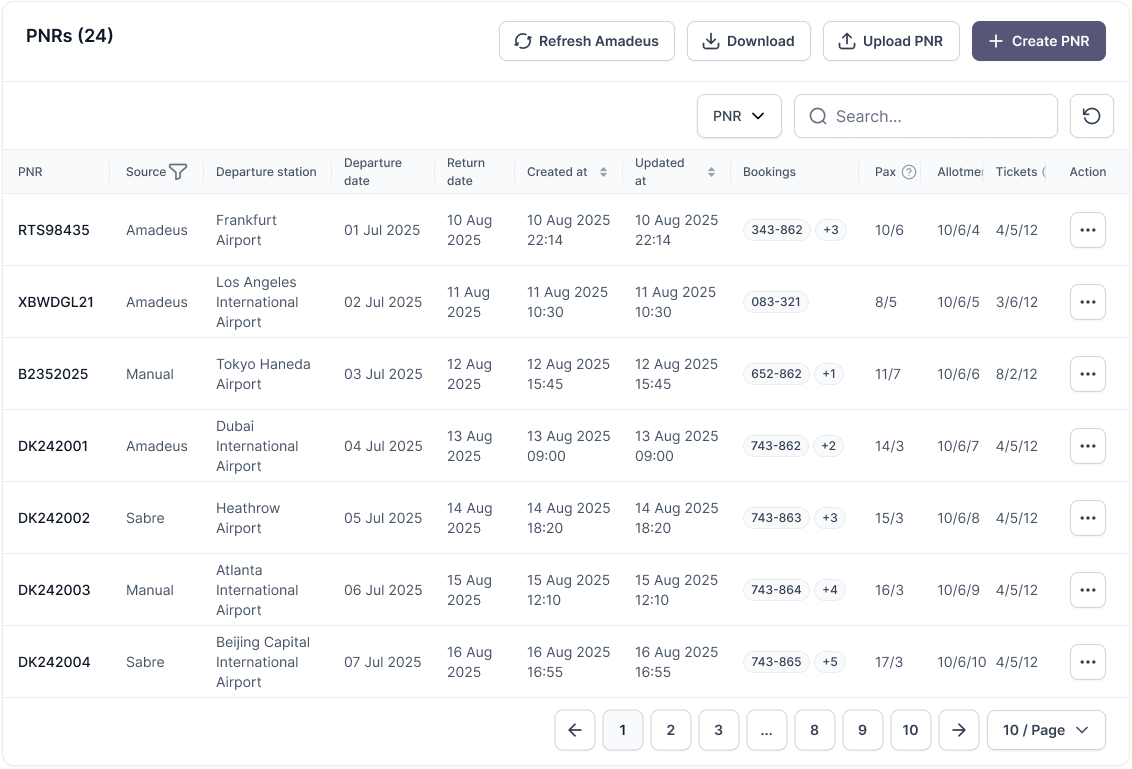 Så fort ett flyg är bokat i Amadeus hämtas PNR-datan automatiskt in i Vaylo. Det innebär att du kan: